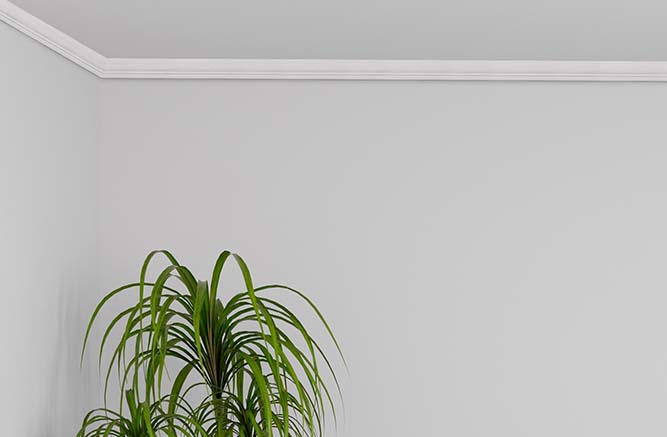 Rodameio em poliestireno na cor branca. Material de acabamento imune as pragas e cupins, resistente a água, não mofam e não apodrecem podendo ser instalados em ambientes úmidos - restrito para ambientes internos